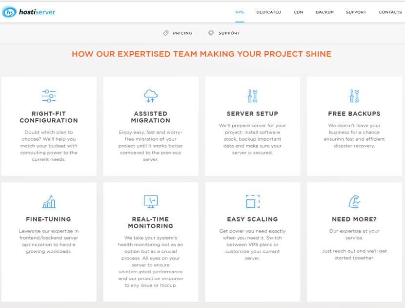 Hostiserver vám nabídne plno funkcí pro splnění všech vašich potřeb týkajících se hostingu. Tady je seznam klíčových funkcí jejich hostingu VPS a balíčků dedikovaných serverů: